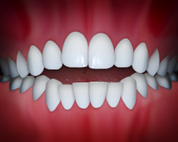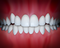The upper front teeth extend too far out over the lower front teeth, sometimes causing the lower front teeth to bite into the roof of the mouth. Problems often associated with an overbite include a “gummy” smile, protruding lips and excessive incisor wear.